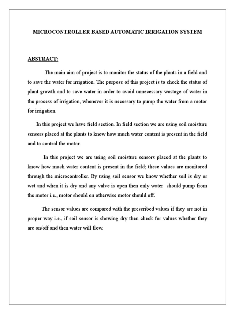 MICROCONTROLLER BASED AUTOMATIC IRRIGATION SYSTEM