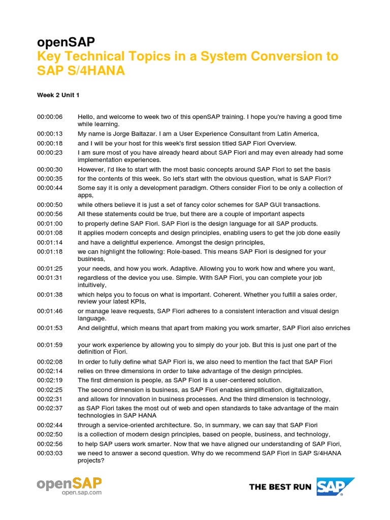 00:00:35 for the contents of this week. So let's start with the obvious question, what is SAP Fiori?