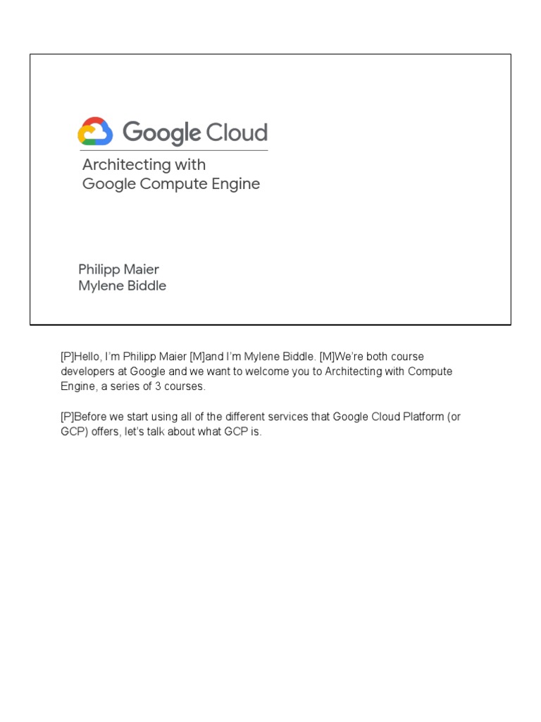 [P]The “Architecting with Google Compute Engine” courses are part of the Cloud