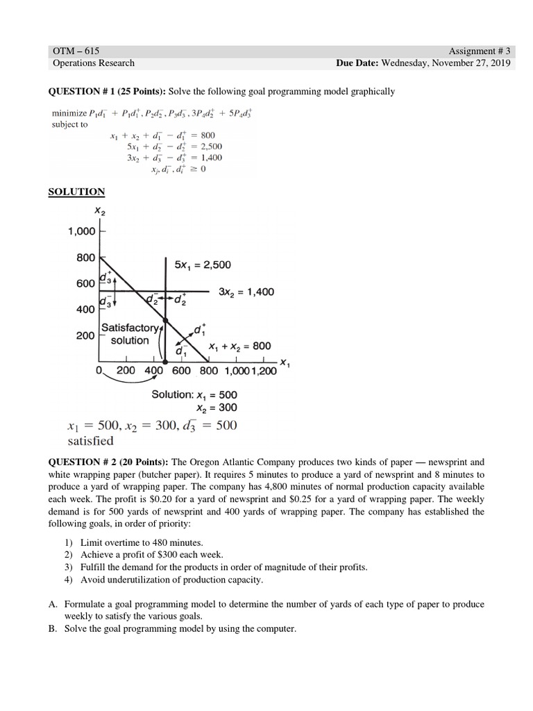 QUESTION # 1 (25 Points): Solve the following goal programming model graphically