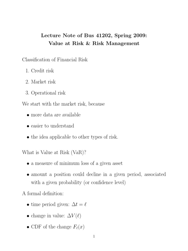 Value at Risk & Risk Management