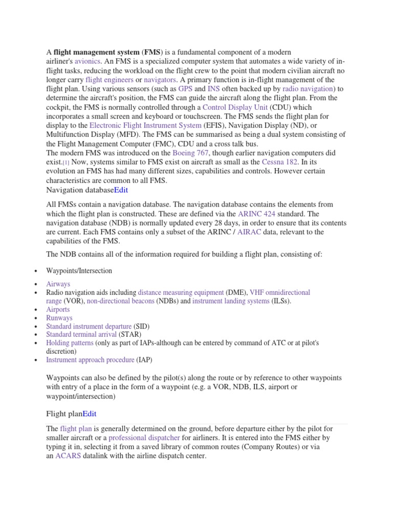 A flight management system (FMS) is a fundamental component of a modern