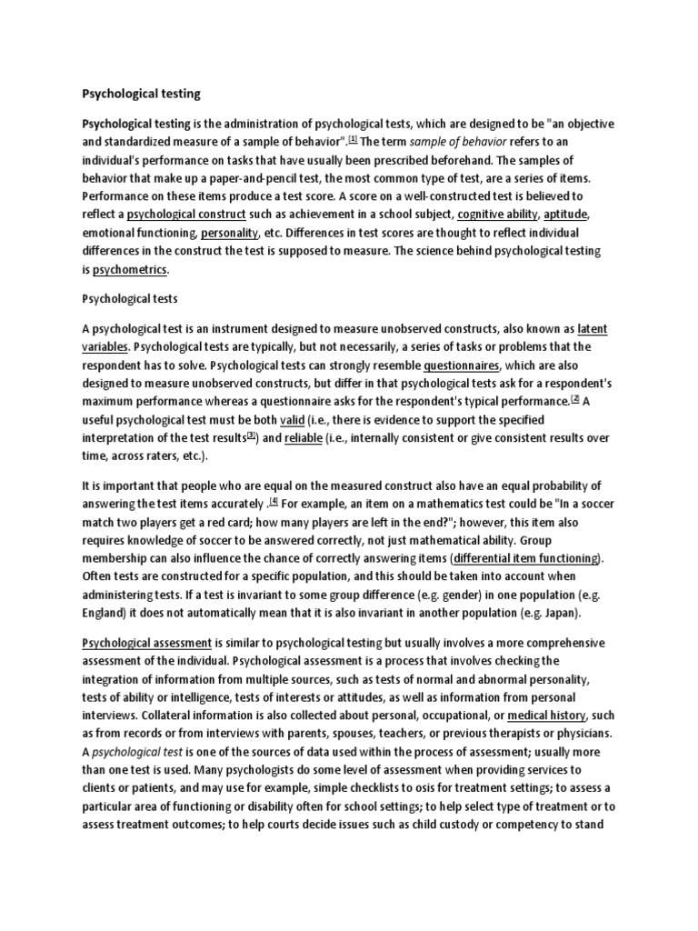 A psychological test is an instrument designed to measure unobserved constructs, also known as latent