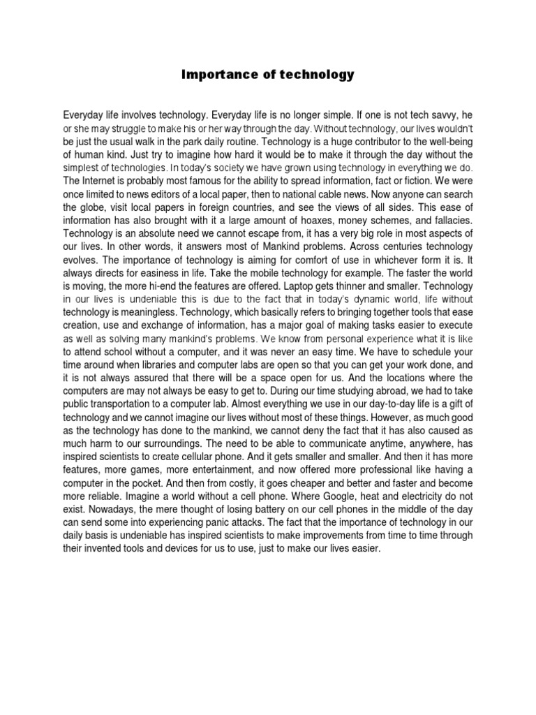of technology. Thus technology is undeniably an important of our life. There is no question that