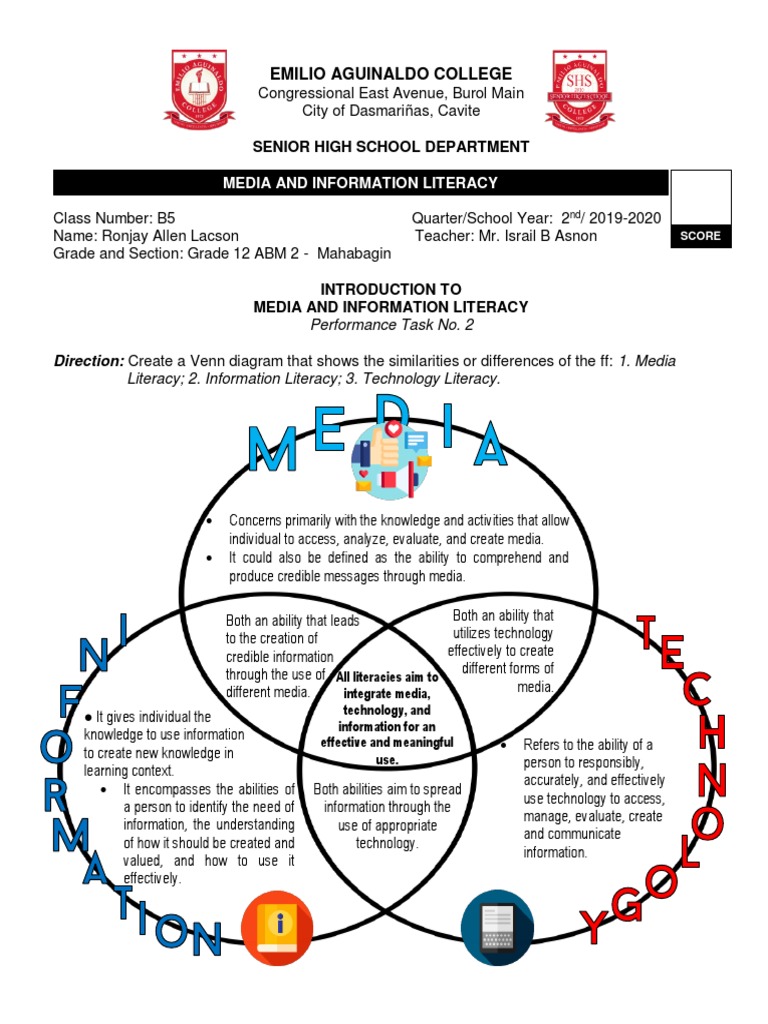 Direction: Create a Venn diagram that shows the similarities or differences of the ff: 1. Media