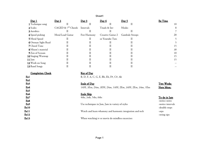 Day 1 Day 2 Day 3 Day 4 Day 5 Ex Time