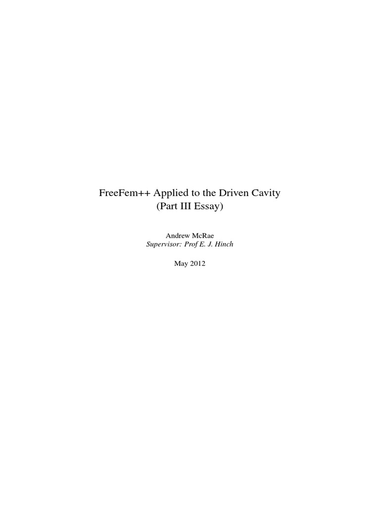 solutions to the lid-driven cavity. I will introduce FreeFem++ with relevant code samples, eventually