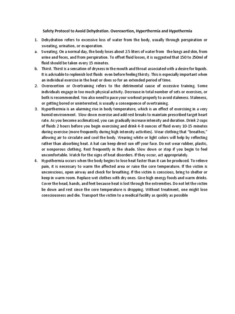 lie down and rest since the core temperature is dropping. Without treatment, one might lose