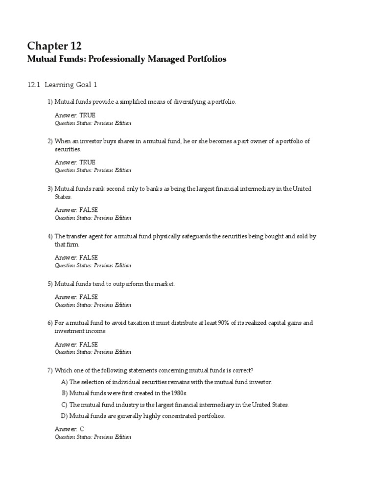 2) When an investor buys shares in a mutual fund, he or she becomes a part owner of a portfolio of