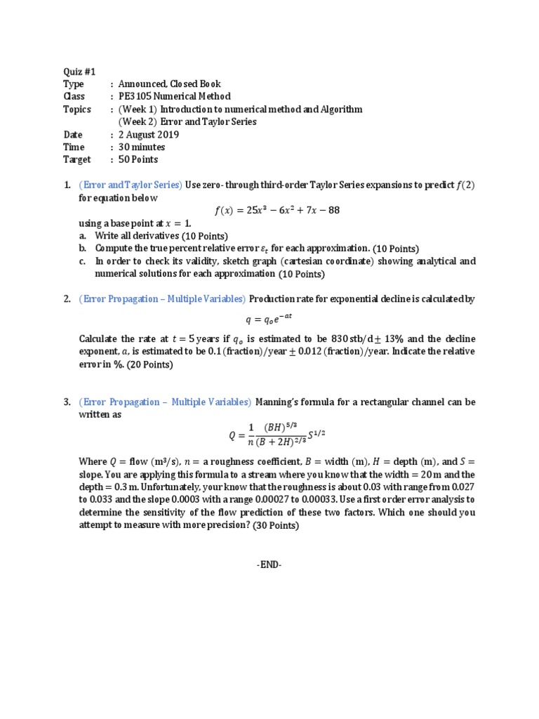 Topics : (Week 1) Introduction to numerical method and Algorithm