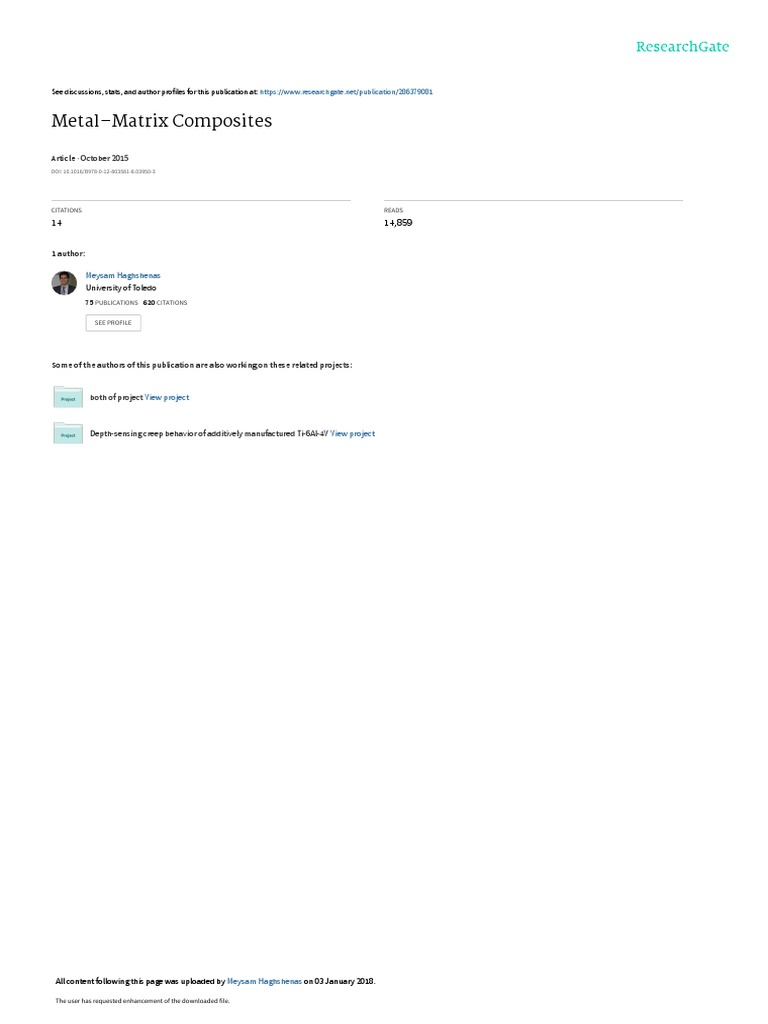Change History: July 2015. M. Haghshenas added an ‘Abstract’ and a detailed ‘Introduction’ including Figures 1–3. ‘Types of MMCs’ were extended and