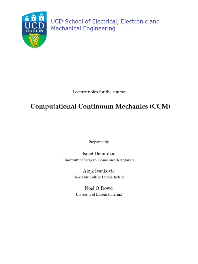 known in computational fluid mechanics. Computational Continuum Mechanics (CCM) course is