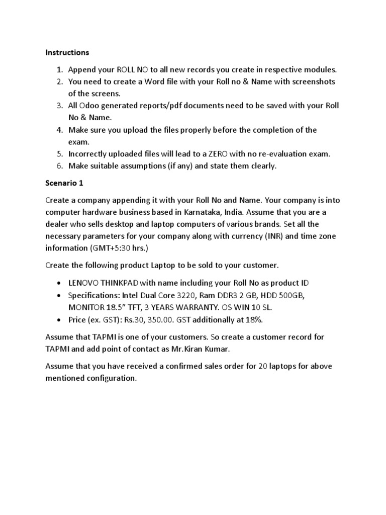 1. Append your ROLL NO to all new records you create in respective modules.