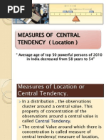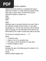 of numbers. Three familiar measures of central tendency are the mean, the median, and