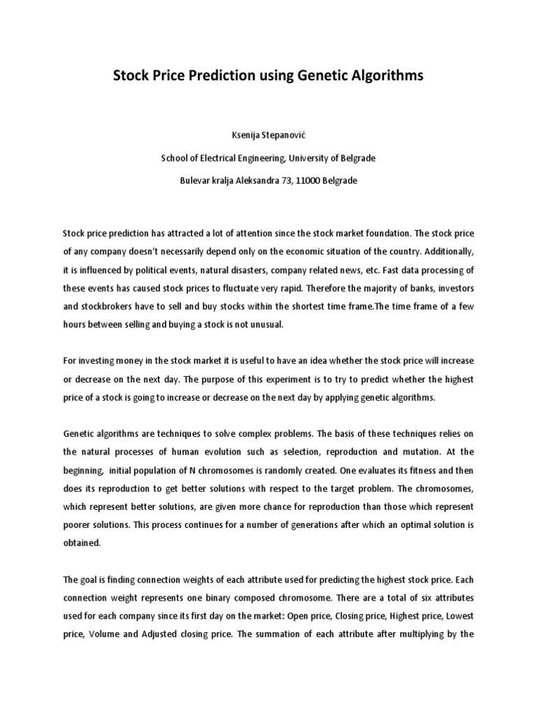 price of a stock is going to increase or decrease on the next day by applying genetic algorithms.