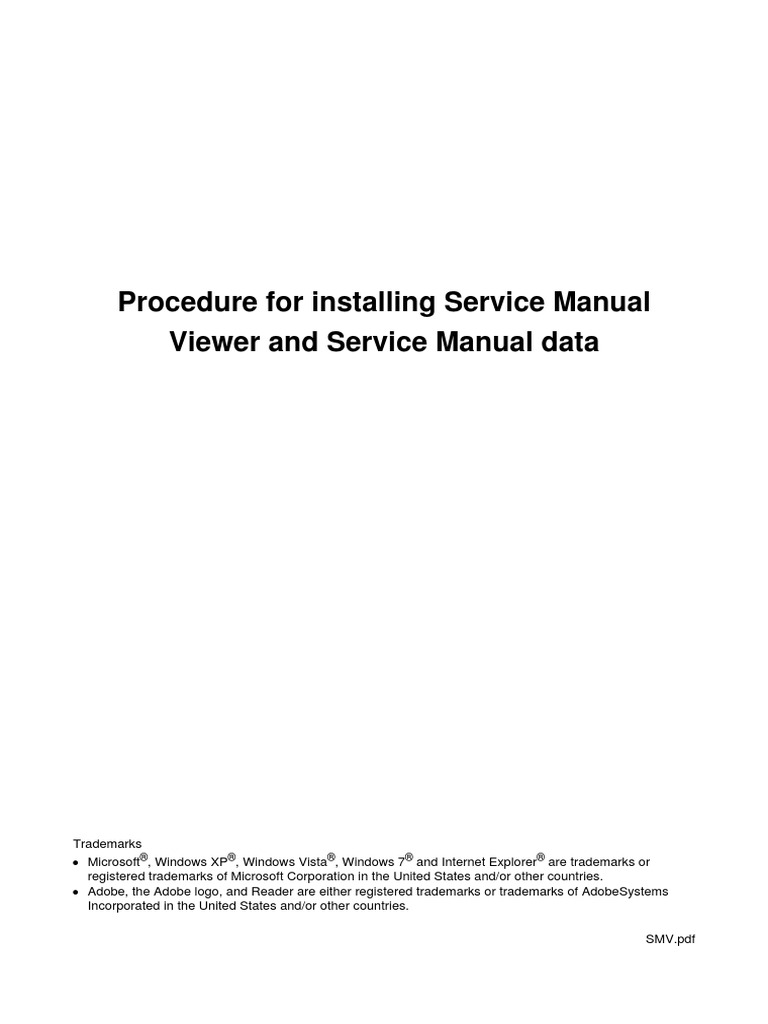 Refer to System Requirements for installation of Service Manual Viewer (Readme.pdf).