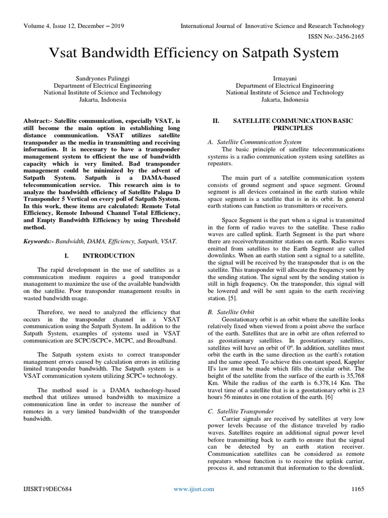 Keywords:- Bandwidth, DAMA, Efficiency, Satpath, VSAT. there are receiver/transmitter stations on earth. Radio waves