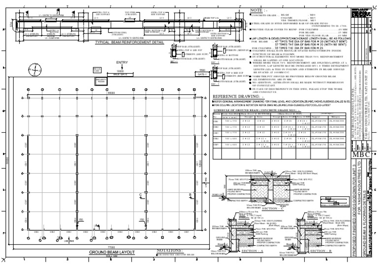 NOTATIONS: 50mm THK PCC SECTION - A 50mm THK PCC
