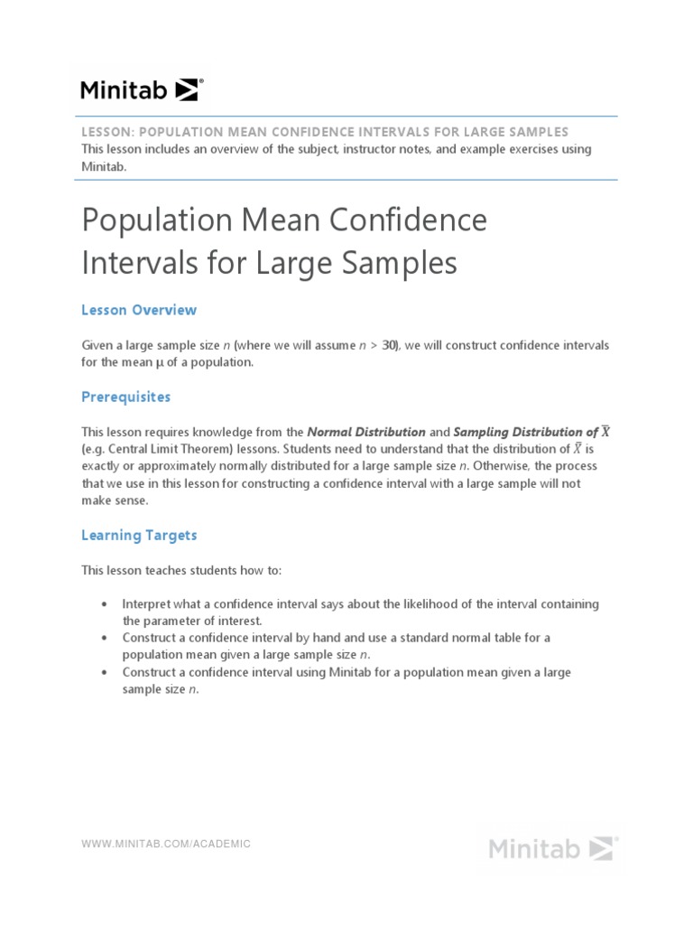 • Minitab worksheet of sample data, entitled CIForMean_LargeSample_Lesson.mtw