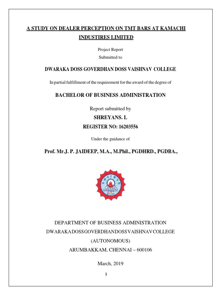 A STUDY ON DEALER PERCEPTION ON TMT BARS AT KAMACHI