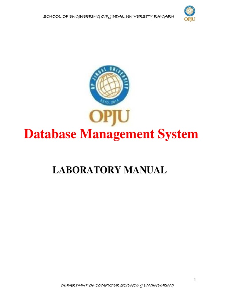 SCHOOL OF ENGINEERING O.P. JINDAL UNIVERSITY RAIGARH