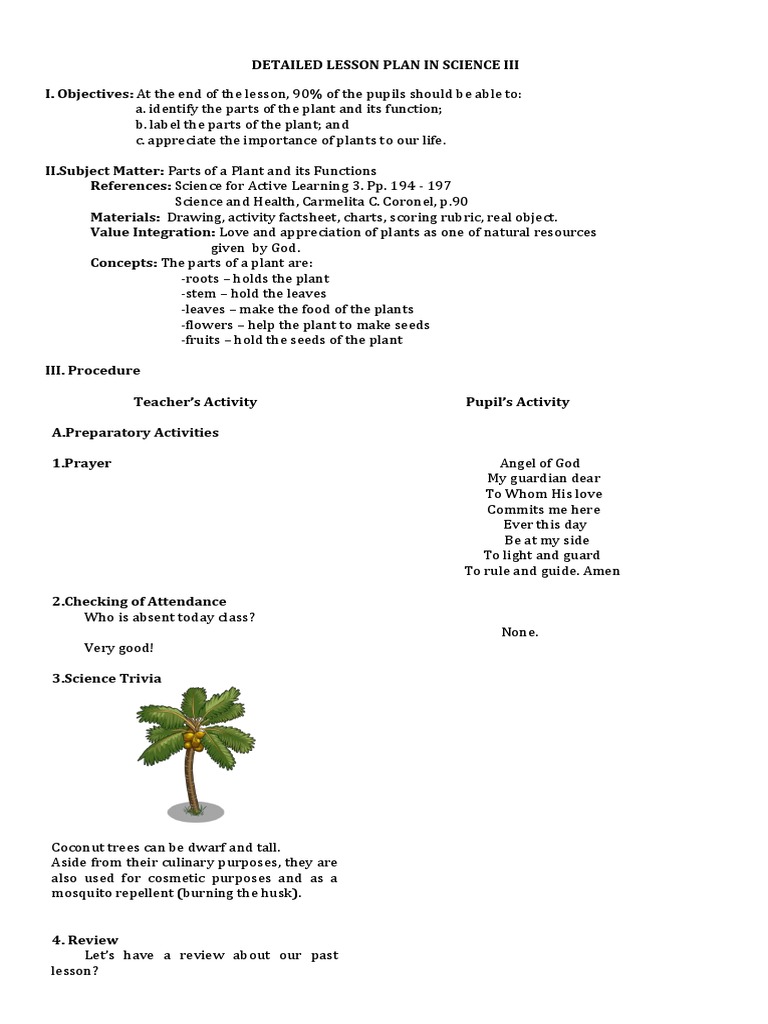 I. Objectives: At the end of the lesson, 90% of the pupils should be able to:
