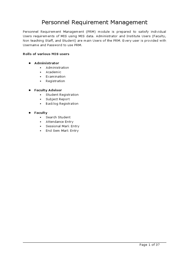 Personnel Requirement Management (PRM) module is prepared to satisfy individual