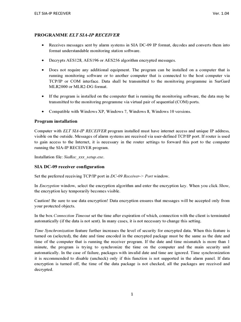 format for data receiving. Activate the monitoring program TCP/IP port, then activate the ELT SIA-IP