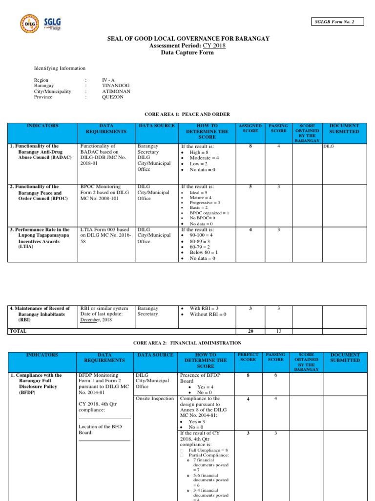 Barangay Development BDC Form 1 Barangay Ideal = 2