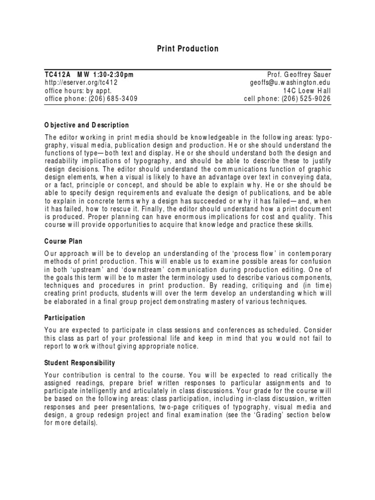 techniques and procedures in print production. By reading, critiquing and (in time)