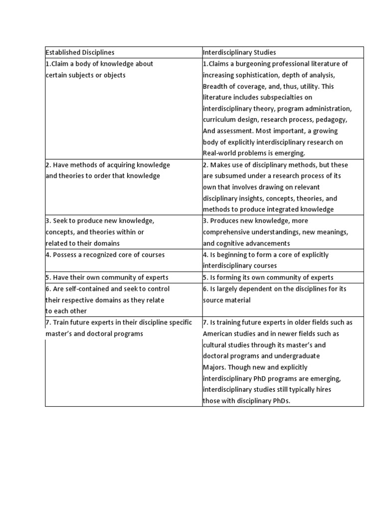 discipline, and draws on the disciplines with the goal of integrating their insights to