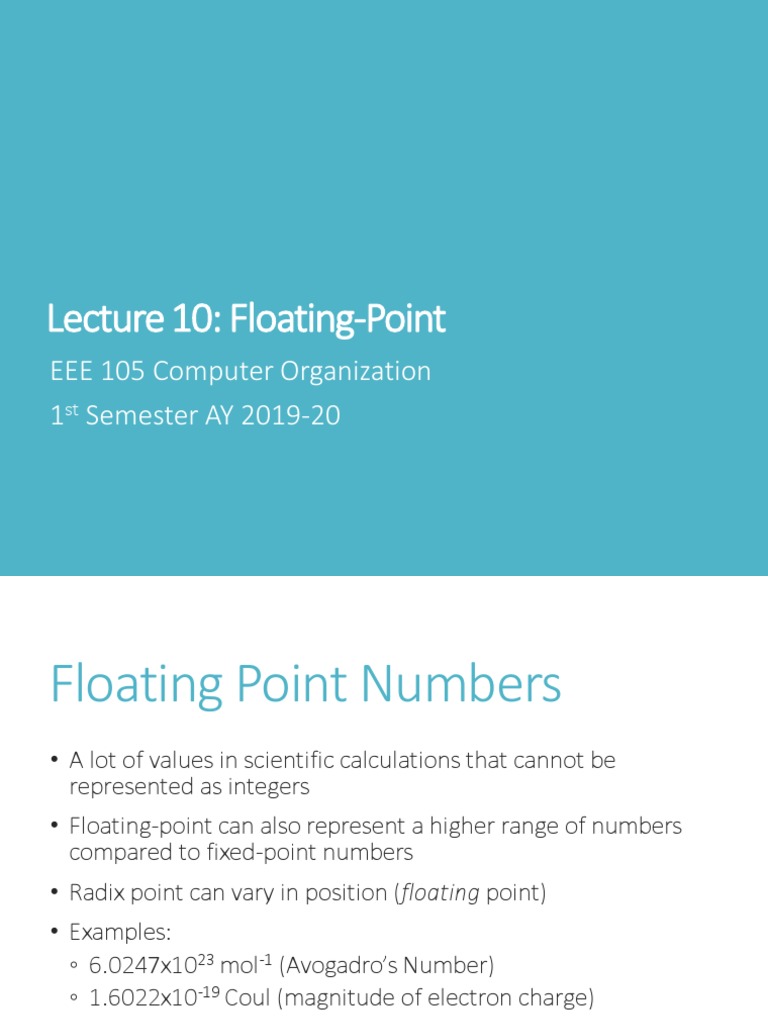 Conversion: 𝑁 = −1 𝑆 × 2𝐸−127 × 1. 𝑀