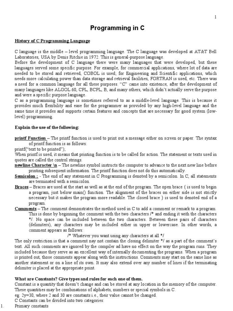 a need for a common language for all these purposes. “C” came into existence, after the development of