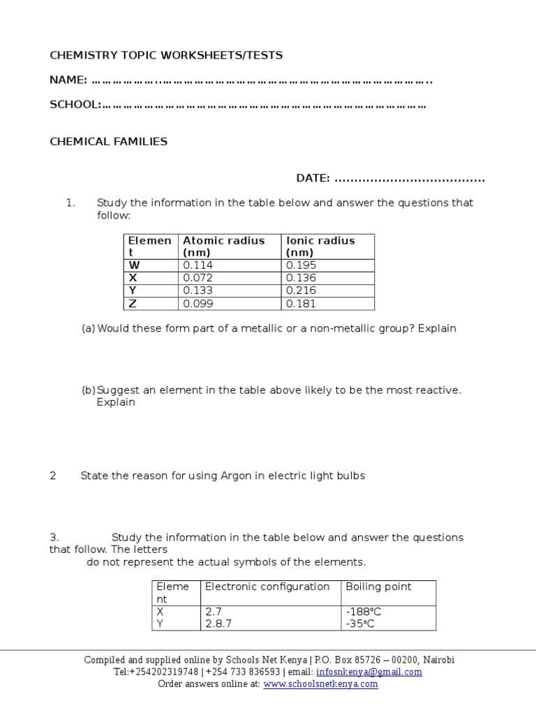 CHEMISTRY TOPIC WORKSHEETS/TESTS