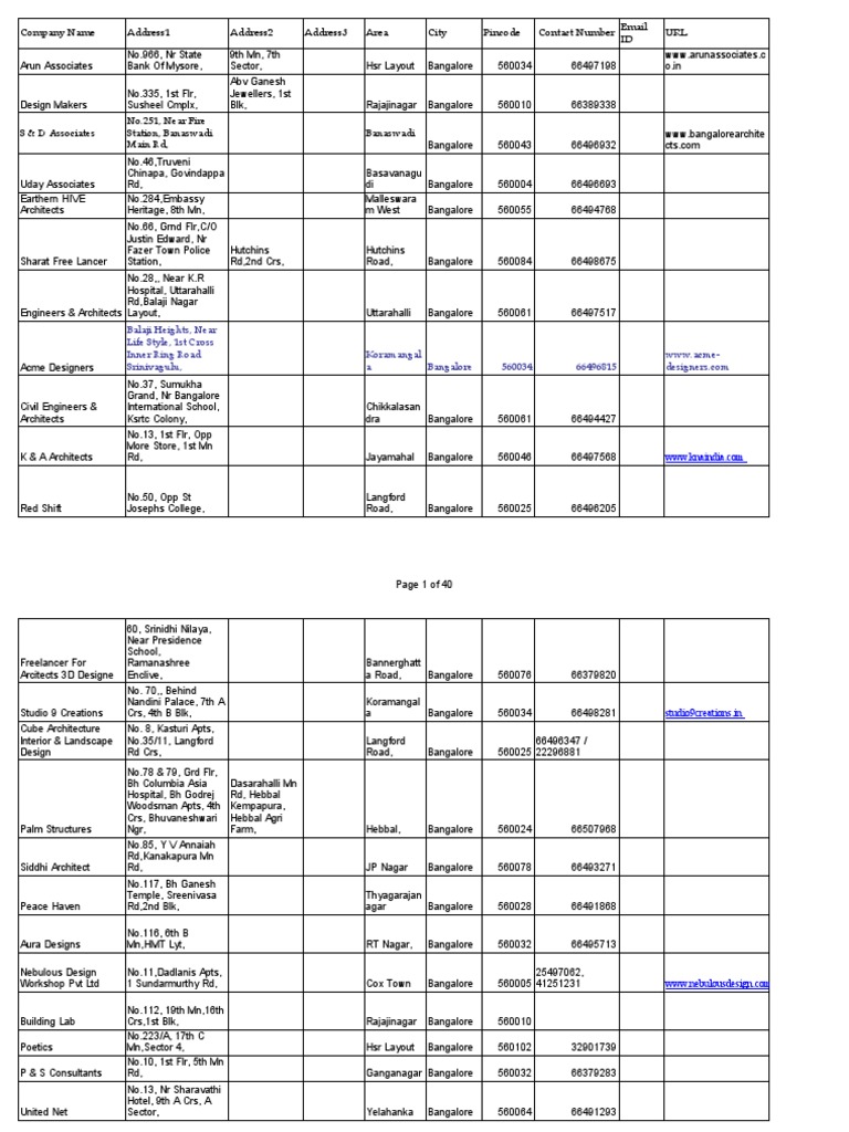 Company Name Address1 Address2 Address3 Area City Pincode Contact Number URL Email ID