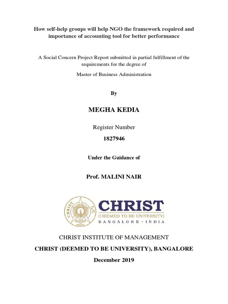 I hereby declare that the Social Concern Project report with the title “How self-help groups