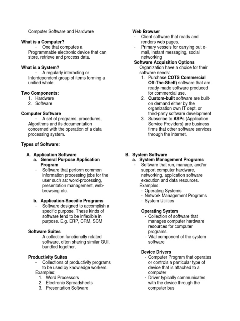 purpose. E.g. ERP, CRM, SCM manages computer hardware
