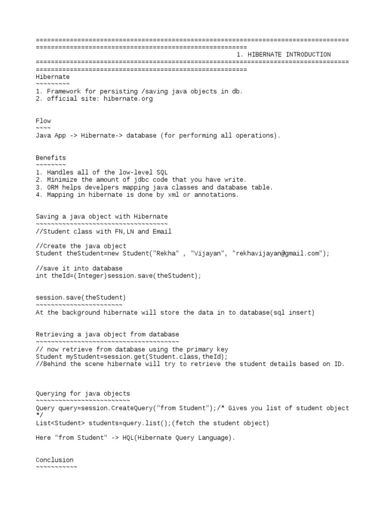 Using hibernate you can perform creating objects / Read Object / Delete object and