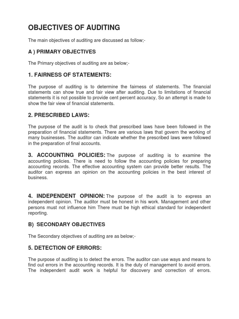 objective of Auditing. It checks each & every financial transaction thoroughly.