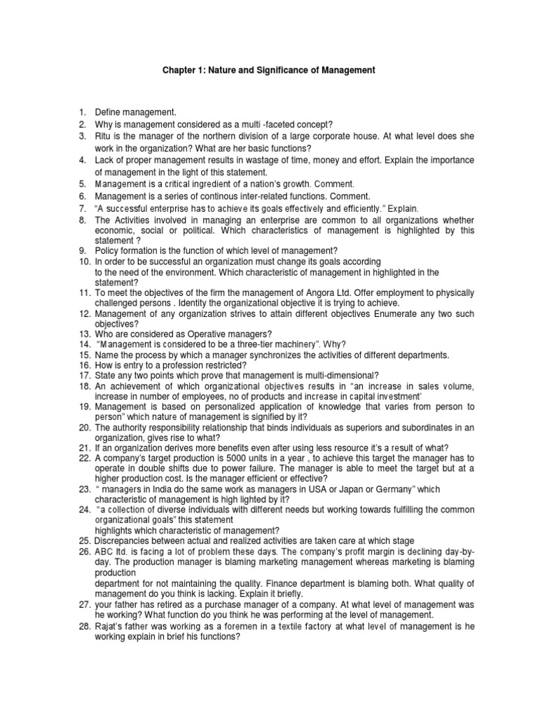 Chapter 1: Nature and Significance of Management
