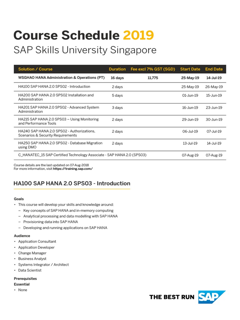 WSGHAO HANA Administration & Operations (PT) 16 days 11,775 25-May-19 14-Jul-19