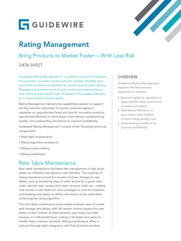 able to manage rating algorithms, changes can be made quickly and efficiently, enabling faster speed to