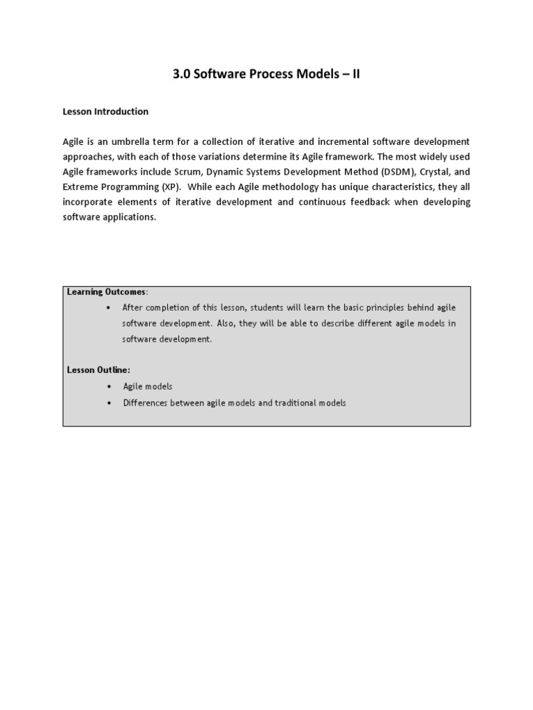 stakeholders), informal methods, and minimal software engineering work products. Agile