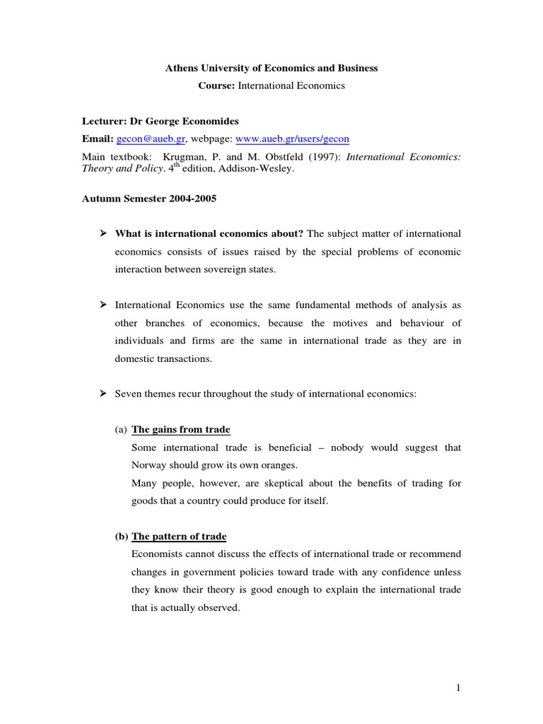 Main textbook: Krugman, P. and M. Obstfeld (1997): International Economics:
