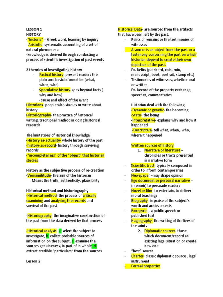 LESSON 1 Historical Data- are sourced from the artifacts
