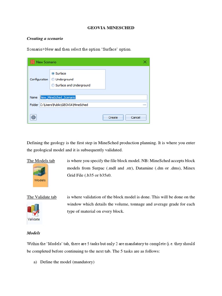 models from Surpac (.mdl and .str), Datamine (.dm or .dms), Minex