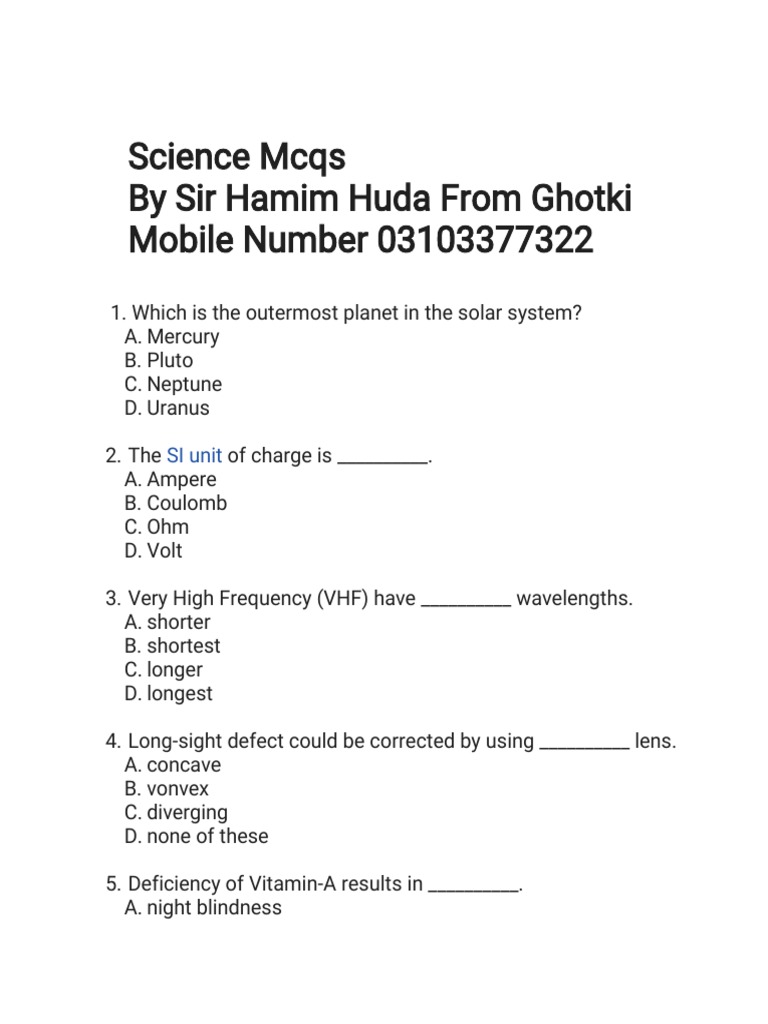 Science Mcqs With Ans Key MR - Hamim