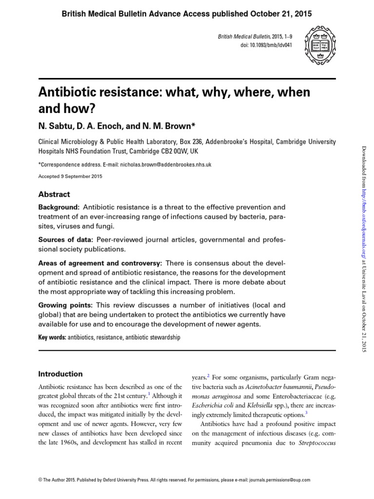 3. Livermore DM. Has the era of untreatable infections 15. Costelloe C, Metcalfe C, Lovering A, et al. Effect of