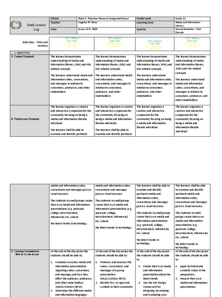media and information codes, media and information codes, The learners shall be able to The learners shall be able