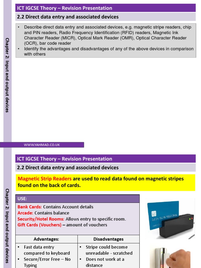 • Describe direct data entry and associated devices, e.g. magnetic stripe readers, chip
